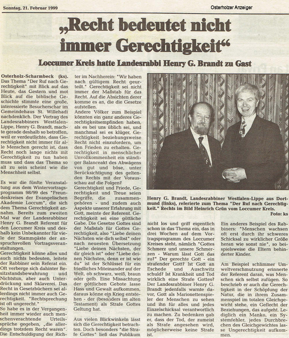 | Presse-Bericht am 23.12.1998 zu einer Spende des Loccumer Kreises | ||